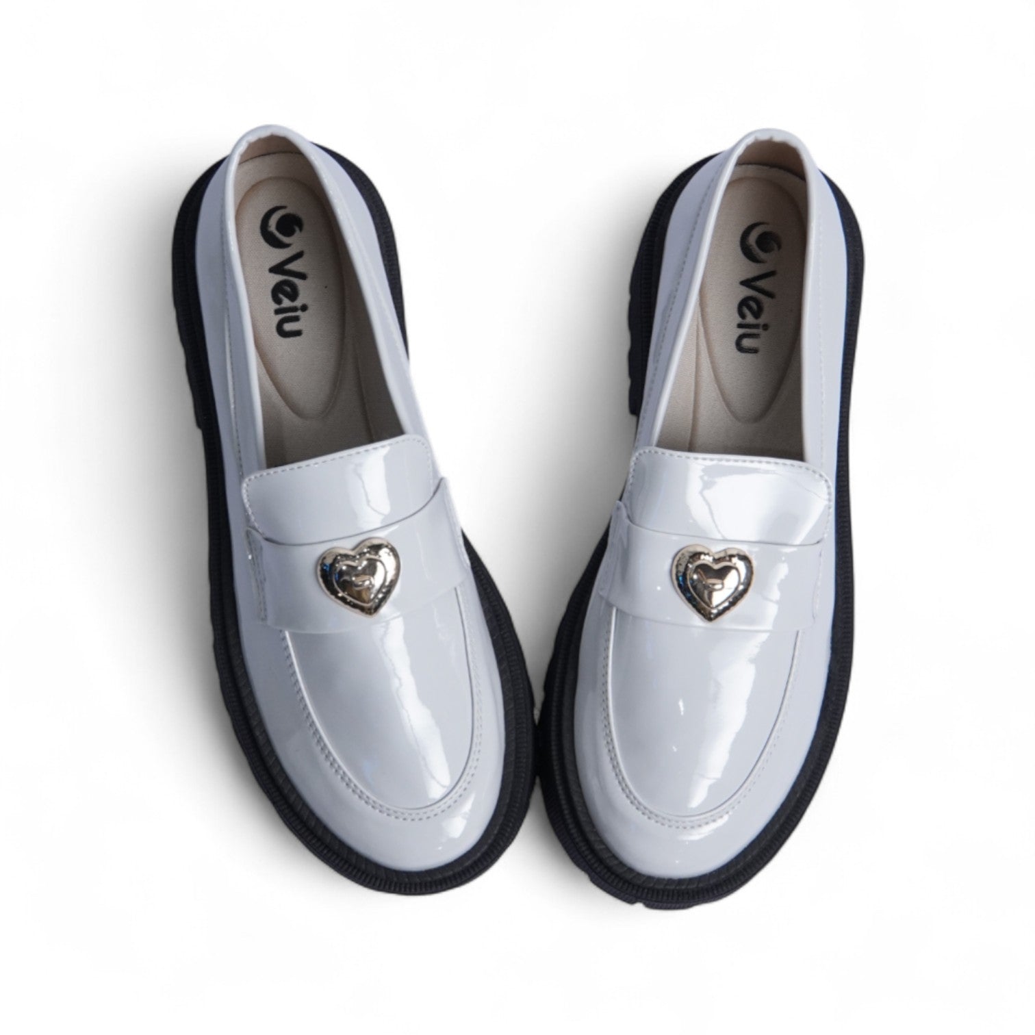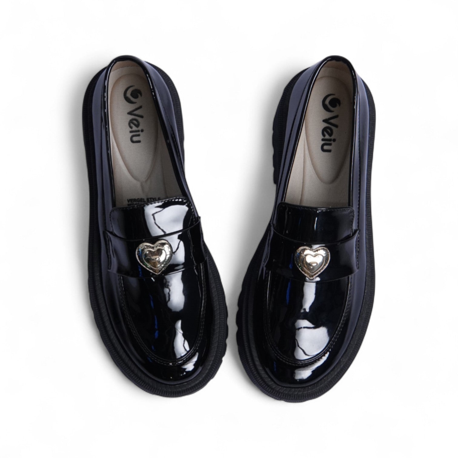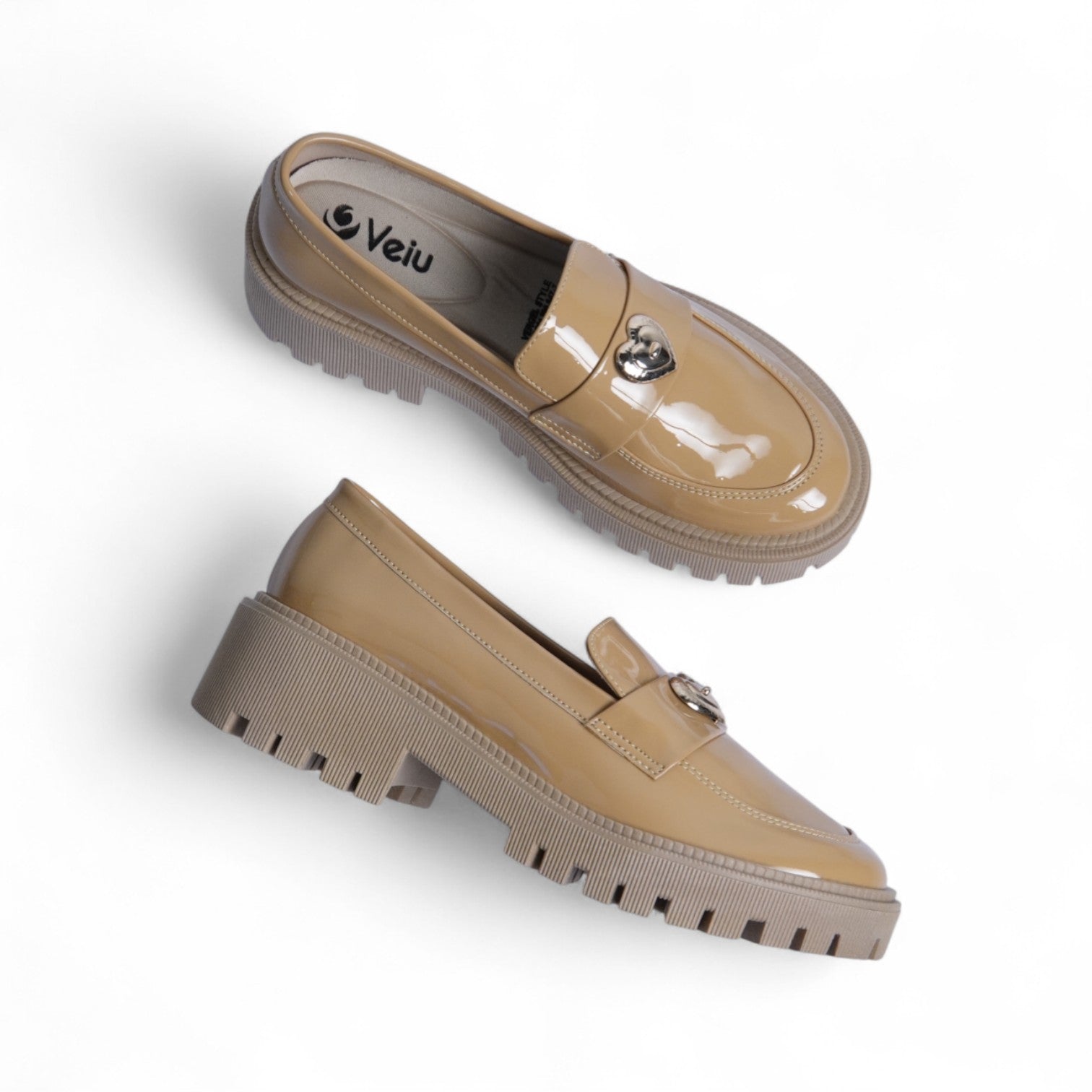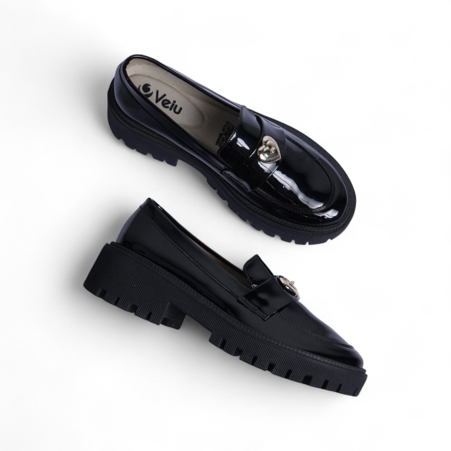 Un mocasín que roba miradas desde el primer paso.Su acabado en charol y la suela tractorada crean un estilo moderno y atrevido, mientras el corazón metálico convierte este diseño en algo realmente único. No es un zapato común: es una pieza que te hace sentir segura, femenina y con actitud. Perfecto para destacar con cualquier outfit y pensado para mujeres que aman verse diferentes. ¡Hazlo tuyo hoy y eleva tu estilo sin esfuerzo!