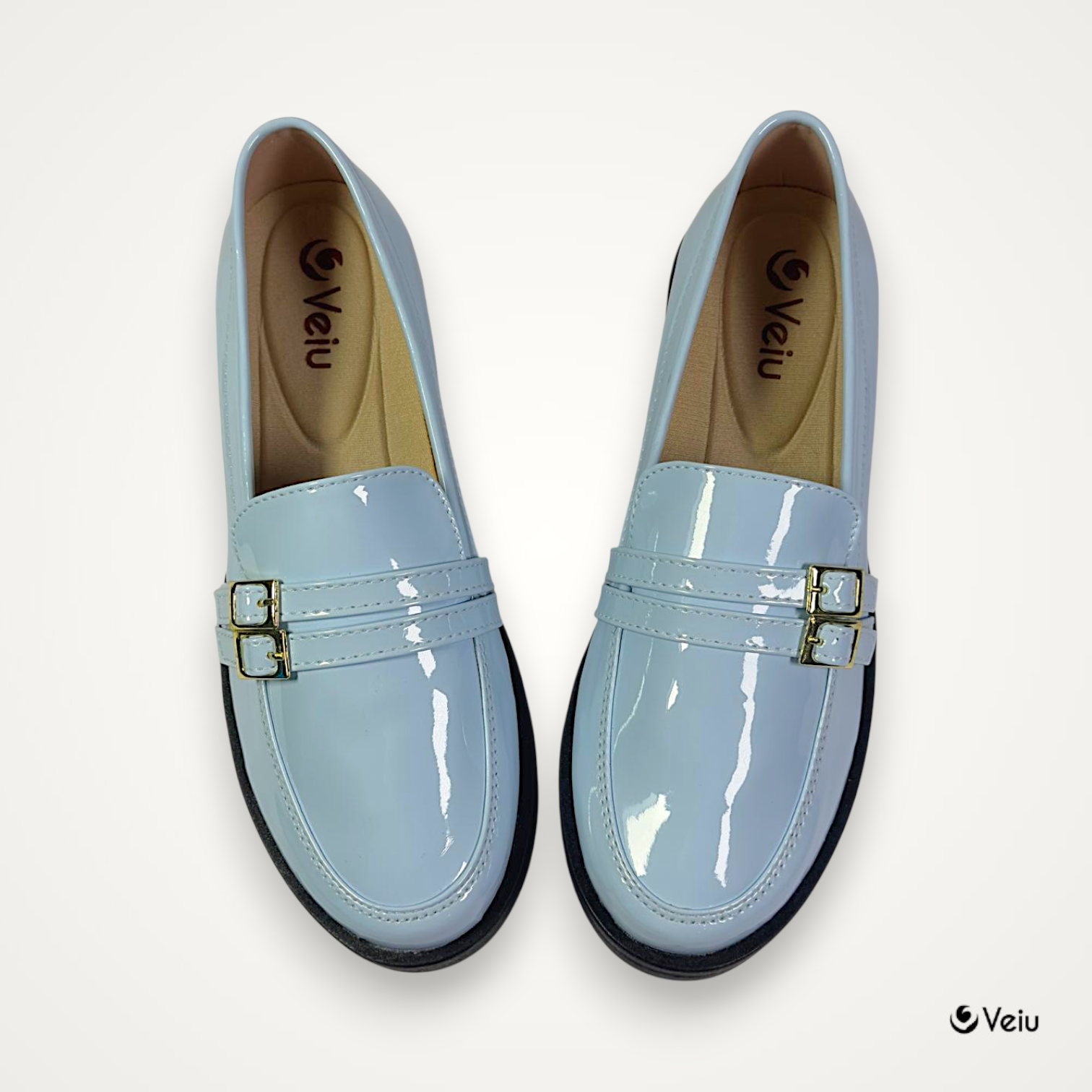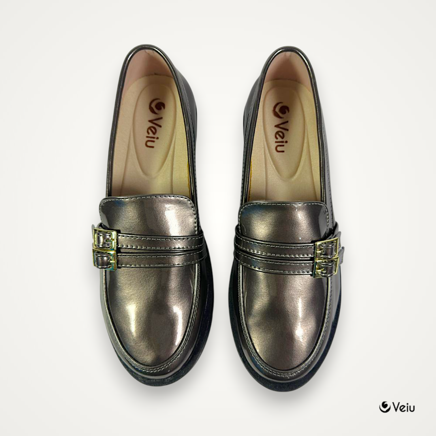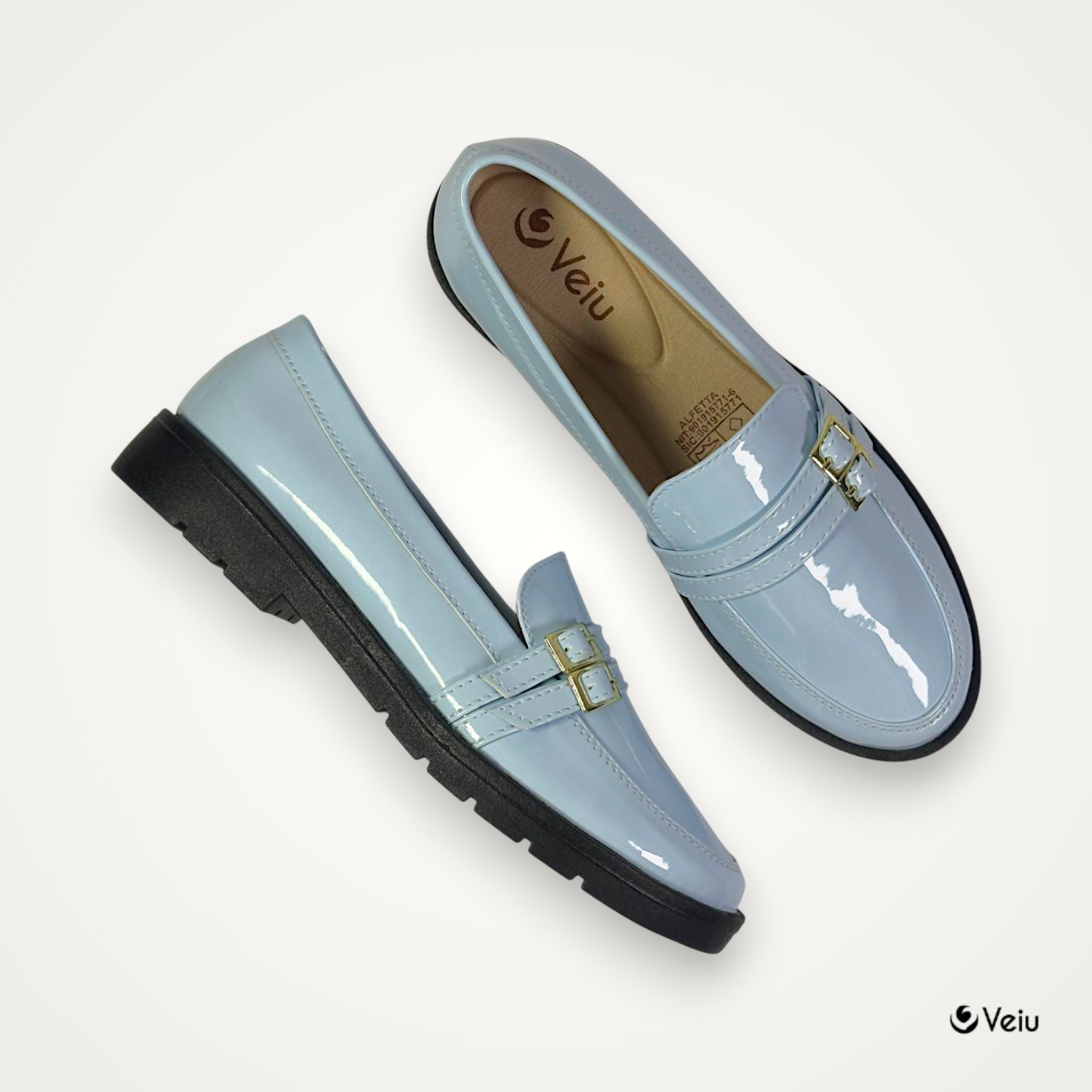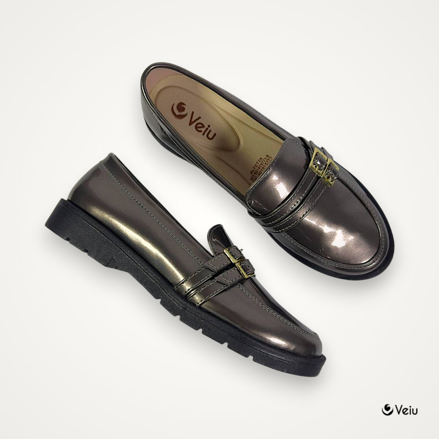Este sofisticado mocasín en acabado charol brillante es la combinación perfecta entre elegancia y modernidad. Su diseño refinado con detalle de herraje metálico decorativo en la parte superior aporta un toque distintivo que eleva cualquier look.
