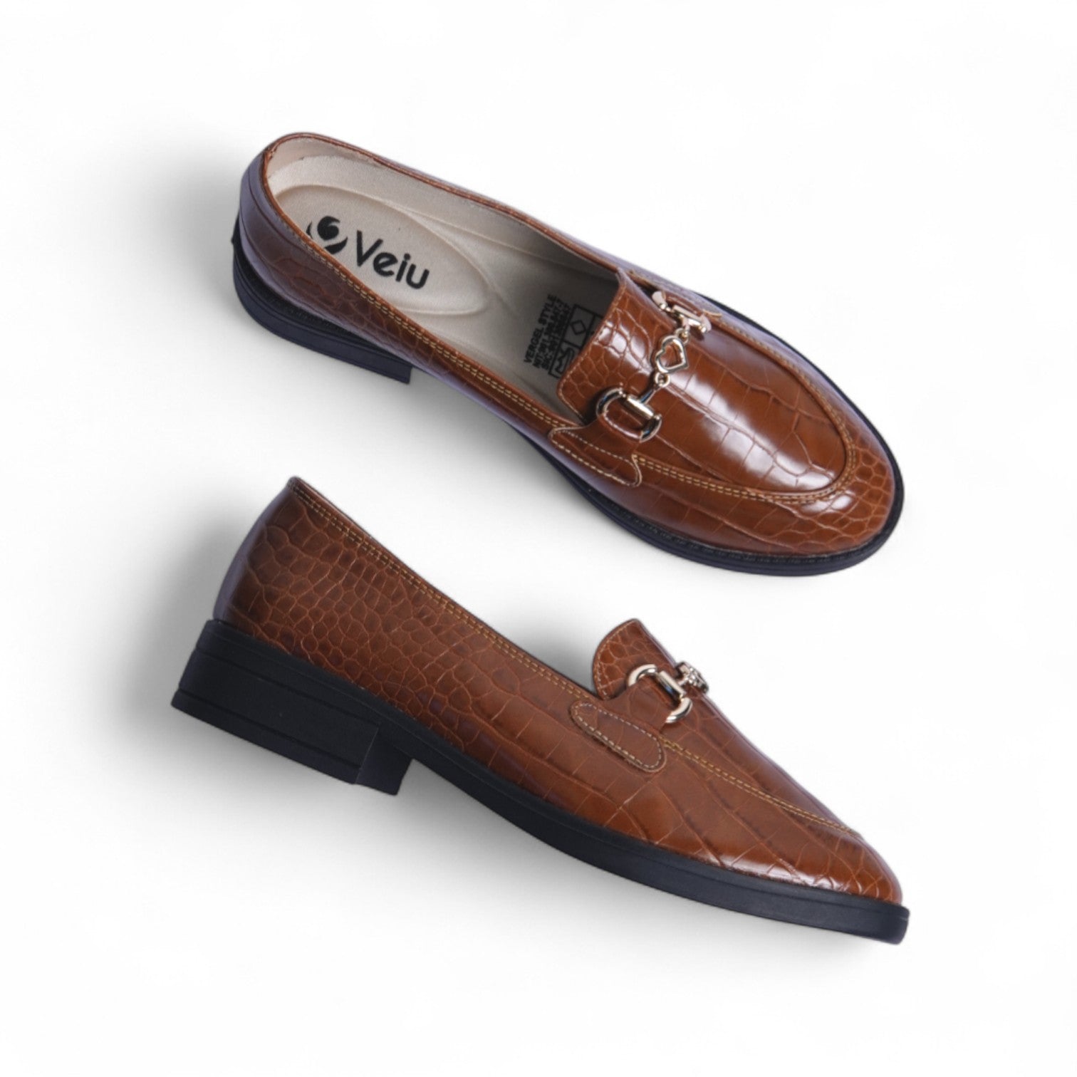 Elegancia sin esfuerzo para todos los días.Este mocasín croc en tono taupe luce sofisticado, combina con todo y eleva cualquier outfit sin sacrificar comodidad. Su herraje dorado le da un toque moderno y chic que transforma un look básico en algo especial. Perfectos para la oficina o diario: suaves, livianos y listos para ser tu par favorito.