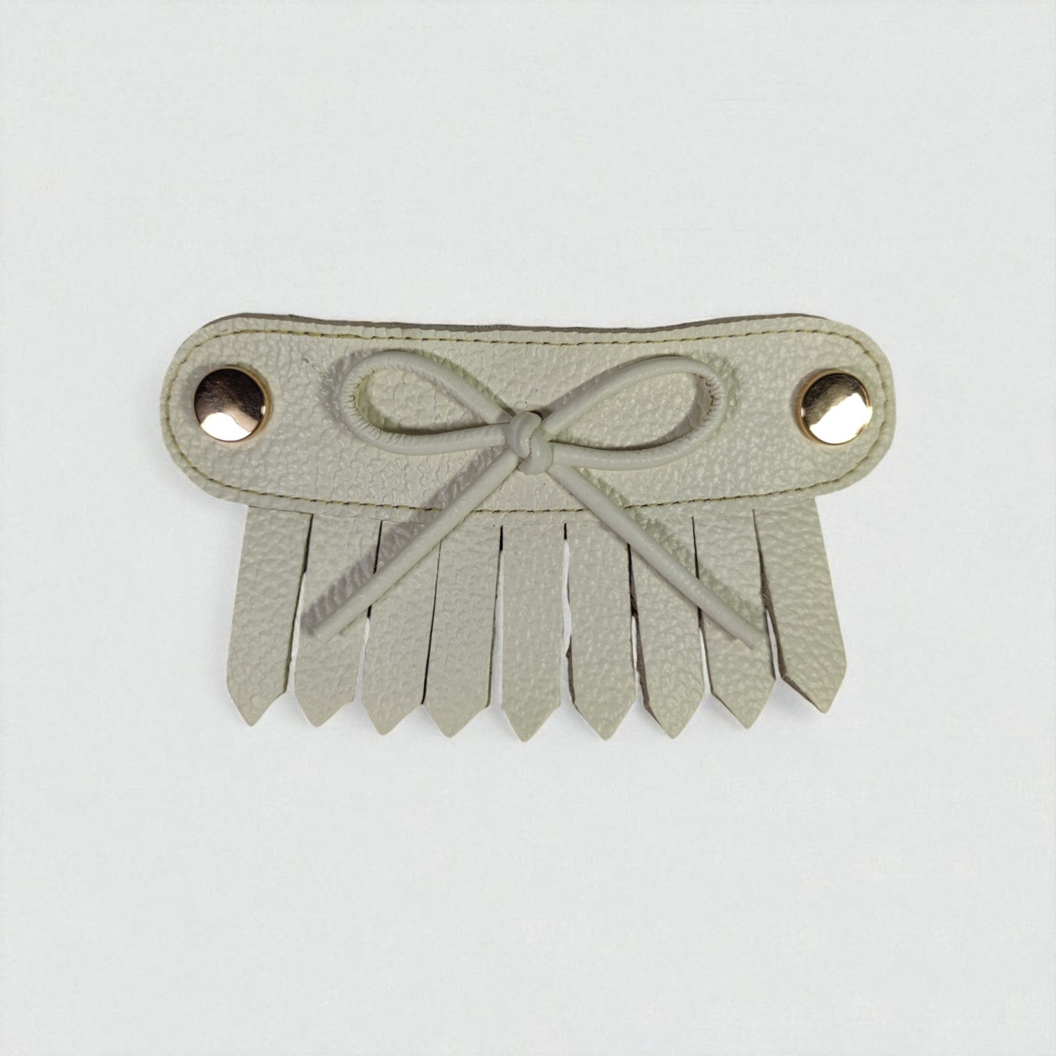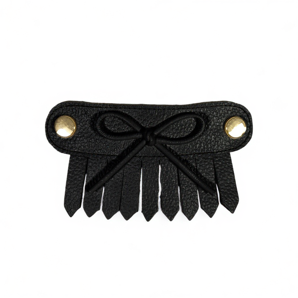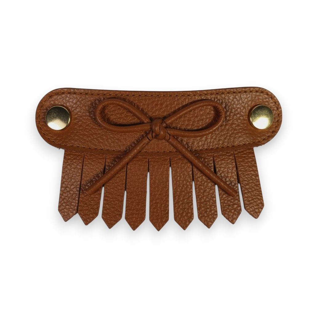 Detalle flecos con moño cuero