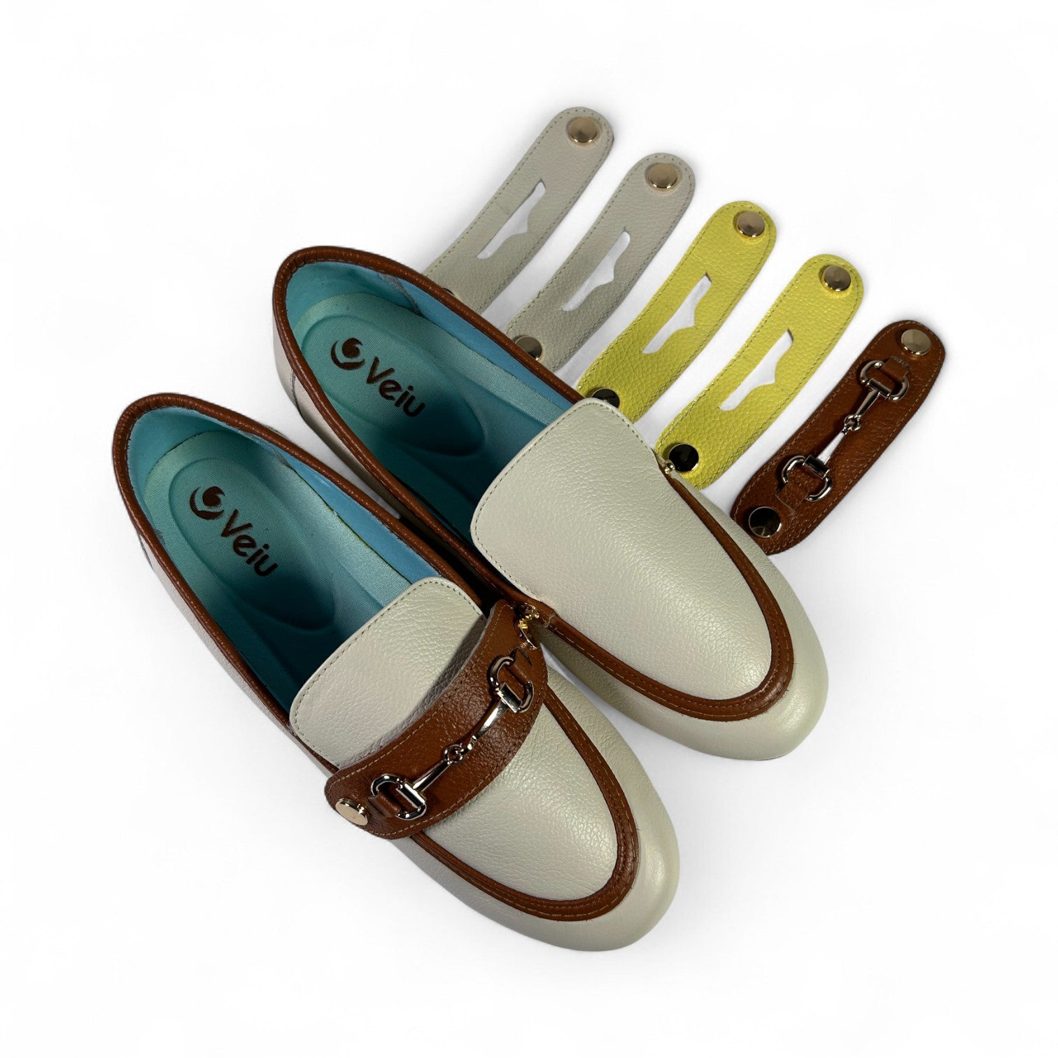 Dualé es nuestro mocasín transformable con chapetas intercambiables, diseñado para que tú armes los estilos que quieras. Puedes comprar el cuerpo base del mocasín y añadir todas las chapetas que prefieras: desde diseños clásicos y minimalistas hasta herrajes más llamativos.
